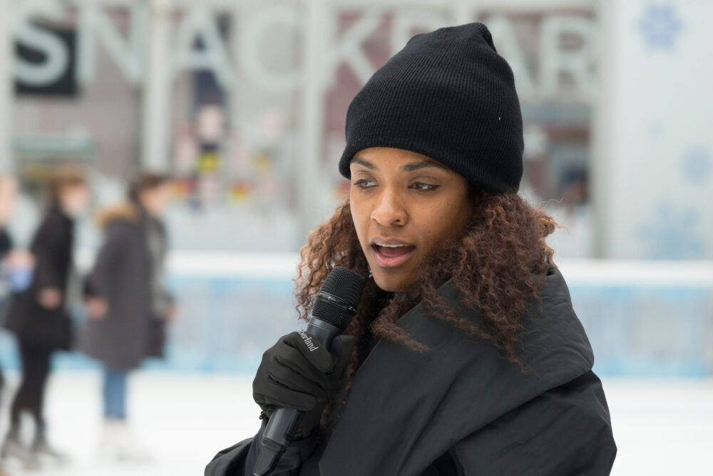 She views skating as a grounding ritual something that allows her to physicalize thought, regulate emotion, and reconnect with herself in a way that feeds directly into her creative output. The public skating session, in her view, is its own kind of concert: music moving through bodies, energy circulating, community forming without announcement.